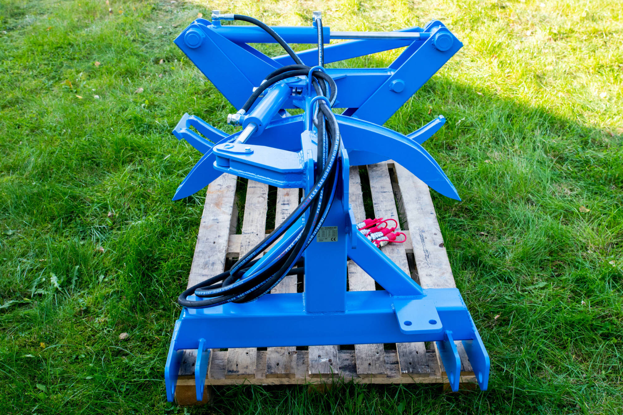 Lunnegripen har hydraulisk sving på bommen. Med 3 stk doble hydr.uttak og hydraulisk toppstag blir dette en smidig løsning for utkjøring av mindre mengder tømmer og ved. Virket kan da løftes opp fra bakken og kjøres ut uten å bli tilgriset av jord og grus. Max åpning på gripeklo 157 cm. Total lengde 125 cm.